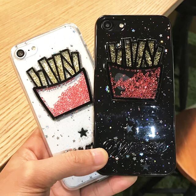関連 :アイフォンケース、アイフォンカバー、iPhone、背面カバー、シェル型、ラメ、グリッター、きらきら、フライド、ポテト、ビーズ、クリア、ブラック、ユニーク、面白い、可愛い、キュート、人気、おすすめ
