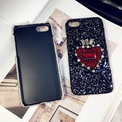 ラメ きらきら ハート 王冠 ビジュー iPhone シェルカバー ケース ( ブラック シルバー ) ★ iPhone 6 / 6s / 6Plus / 6sPlus / 7 / 7Plus / 8 / 8Plus★ [NW289]