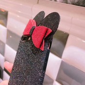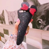 マウス ネズミ 耳 リボン グリッター ブラック iPhone シェルカバー ケース ★ iPhone 6 / 6s / 6Plus / 6sPlus / 7 / 7Plus / 8 / 8Plus ★ [NW359]
