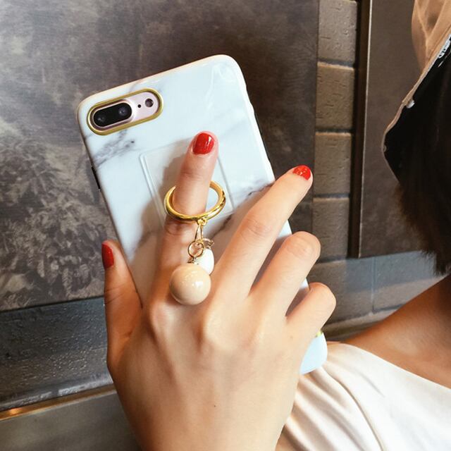大理石 マーブル リング ビーズ iPhone シェルカバー ケース ( ブラック ホワイト グレー ピンク ) ★ iPhone 6 / 6s / 6Plus / 6sPlus / 7 / 7Plus / 8 / 8Plus ★ [NW380]