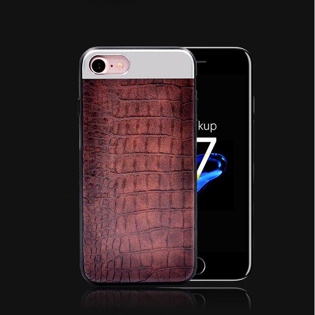 クロコダイル ワニ 革 アルミ ハイブリット iPhone シェルカバー ケース ( ブラック ホワイト レッド ブラウン ) ★ iPhone 6 / 6s / 6Plus / 6sPlus / 7 / 7Plus / 8 / 8Plus ★ [NW453]