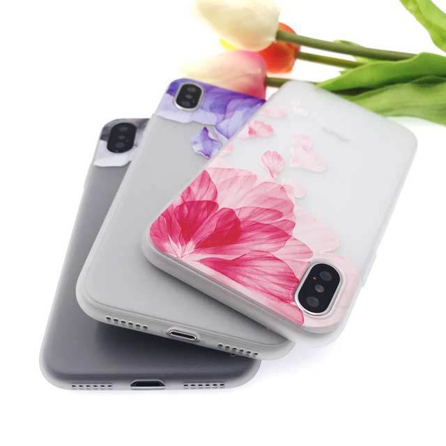 水彩風 花 綺麗 半透明 ソフト シンプル 花びら iPhone シェルカバー ケース グレー レッド パープル アート カッコイイ 大人 男性 女性 ★ iPhone X★ [MD016]