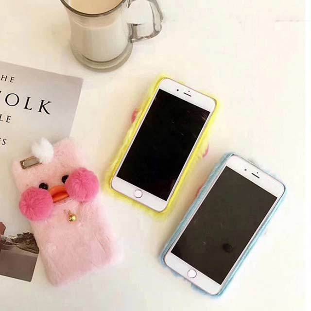 ヒヨコ ファー ほっぺ ポップ カラフル iPhone シェルカバー ケース ( ピンク ブルー イエロー ) もこもこ ★ iPhone 6 / 6s / 6Plus / 6sPlus / 7 / 7Plus / 8 / 8Plus ★ [MD028]