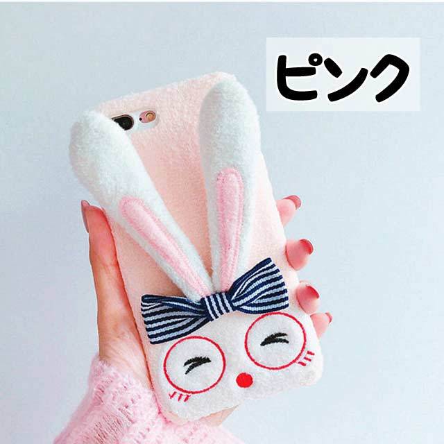 うさぎ メガネ リボン 可愛い iPhone シェルカバー ケース ( グレー ピンク ) ふわふわ 耳 パステル 夢かわいい 乙女 キュート ★ iPhone 6 / 6s / 6Plus / 6sPlus / 7 / 7Plus / 8 / 8Plus / X ★ [MD050]
