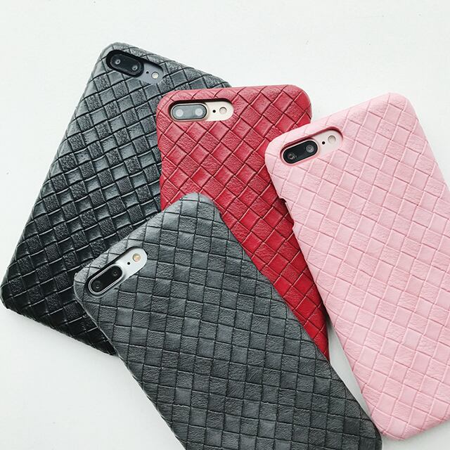 シンプル 革 編み込み iPhone シェルカバー ケース ( ブラック グレー レッド ピンク ブラウン ネイビー ) ★ iPhone 6 / 6s / 6Plus / 6sPlus / 7 / 7Plus / 8 / 8Plus / X ★ [NW499]