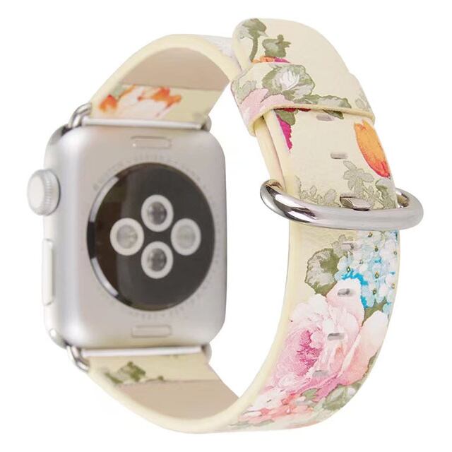カラフルな花柄プリントされたアップルウォッチ用替えベルトです。
