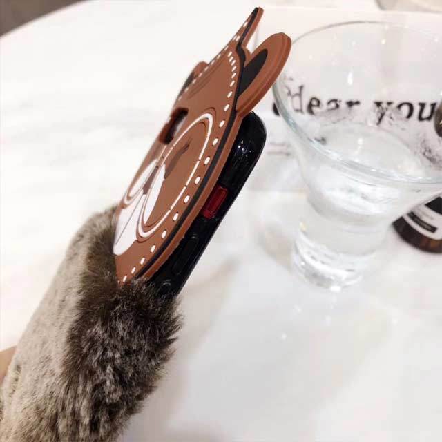 メガネ くま ファー 可愛い iPhone シェルカバー ケース ブラック ピンク ブラウン アニマル ふわふわ ★ iPhone 6 / 6s / 6Plus / 6sPlus / 7 / 7Plus / 8 / 8Plus ★ [MD104]