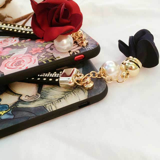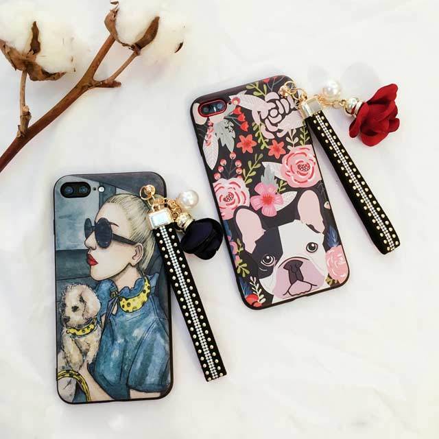 アート チャーム ストラップ iPhone シェルカバー ケース ドッグ 花 バラ お洒落 オトナ 個性的 ★ iPhone 6 / 6s / 6Plus / 6sPlus / 7 / 7Plus / 8 / 8Plus / X ★ [MD113]