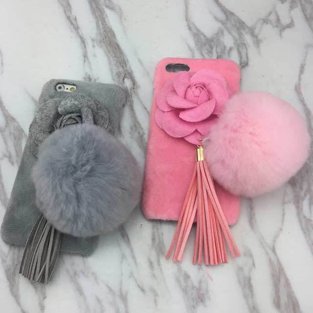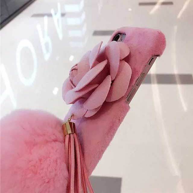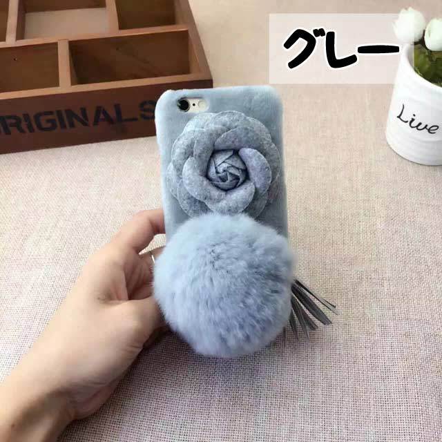 カメリア ファー 可愛い iPhone シェルカバー ケース ブラック グレー ピンク パープル オトナ ★ iPhone 6 / 6s / 6Plus / 6sPlus / 7 / 7Plus / 8 / 8Plus ★ [MD126]