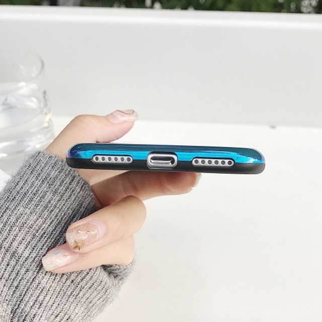 ブルーのミラーがきれいなシェル型iPhoneケースです。