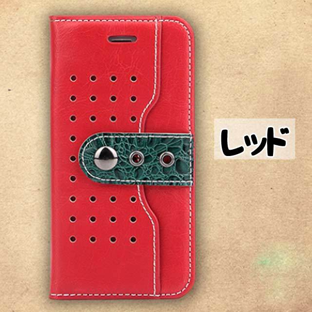 パンチング 本革 カッコイイ iPhone 手帳型 ケース ブラック レッド ブラウン お洒落 カード収納 便利 ★ iPhone 6 / 6s / 7 / 7Plus / 8 / 8Plus ★ [MD150]
