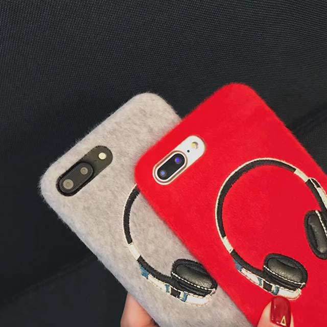 ヘッドホン 刺繍 シンプル iPhone シェルカバー ケース グレー レッド クール 可愛い ★ iPhone 6 / 6s / 6Plus / 6sPlus / 7 / 7Plus / 8 / 8Plus / X ★ [MD172]