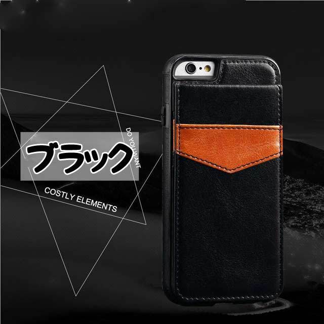 バイカラー カード収納 レザー iPhone シェルカバー ケース ブラック ホワイト レッド ピンク ブルー ブラウン ★ iPhone 6 / 6s / 6Plus / 6sPlus / 7 / 7Plus / 8 / 8Plus / X / SE(第2世代)★ [MD220]