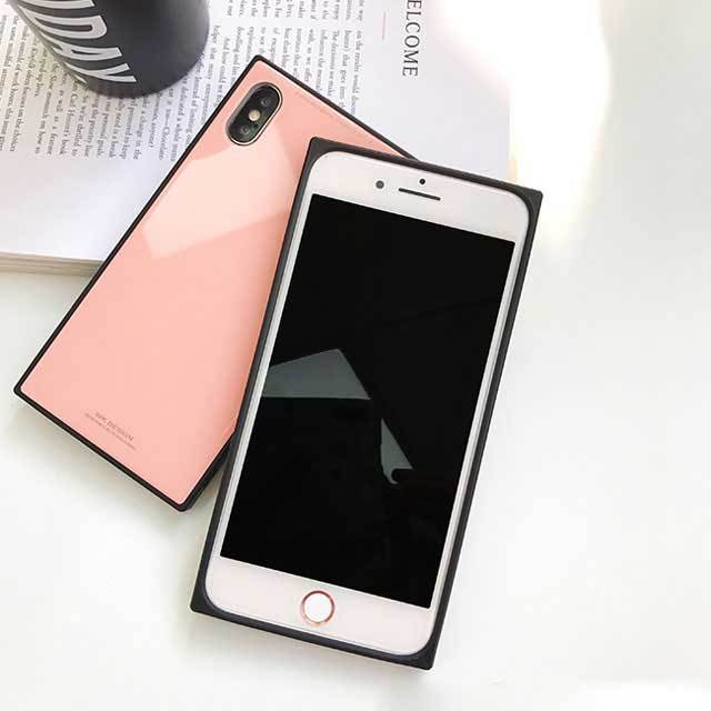 スクエア 鏡面 お洒落 iPhone シェルカバーケース ブラック レッド ピンク シンプル クール 男女兼用 可愛い ★ iPhone 7 / 7Plus / 8 / 8Plus / X / SE(第2世代)★ [MD227]